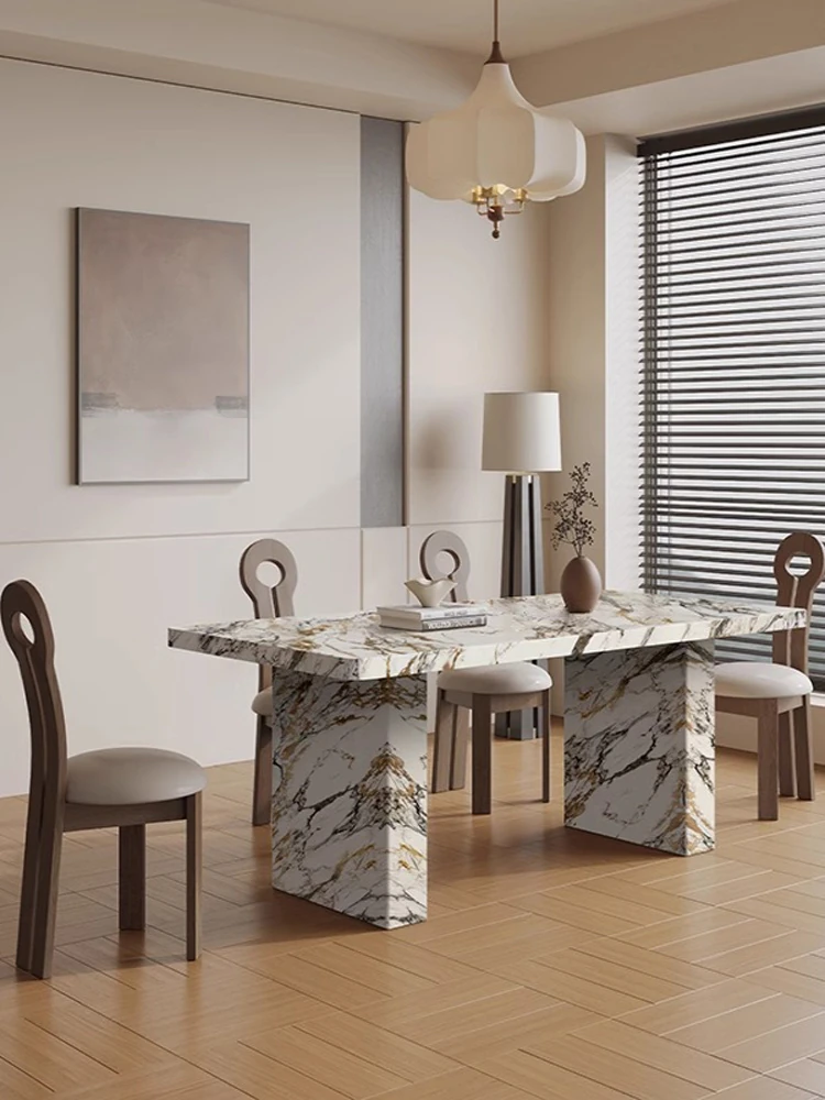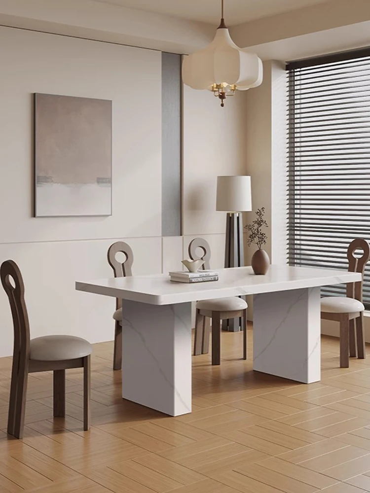 デリフォン無垢岩板ダイニングテーブル - クルミとホワイトアッシュのコンビネーション、モダンでシンプルなデザイン。小さなスペースにもぴったりな、家族や友人との食事を楽しむための理想的なテーブルです!