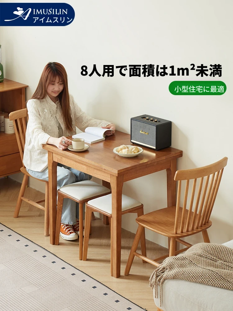 愛木思林の無垢材ダイニングテーブル - 折りたたみ式で省スペース!和風デザインの長方形テーブル、10人まで対応可能。小さなお部屋にもぴったりの食卓で、家族や友人との楽しい食事を演出します。