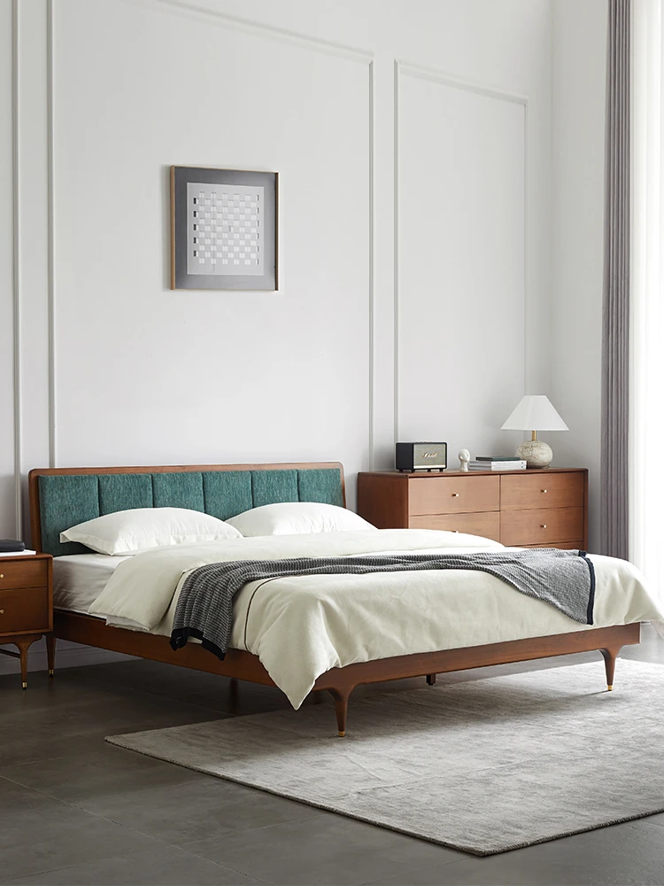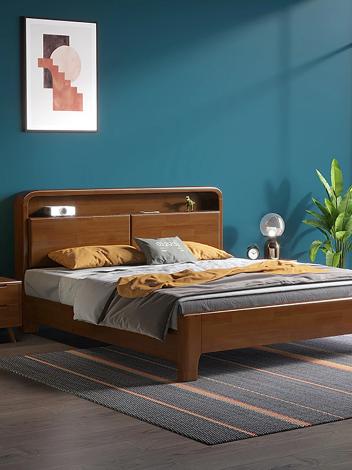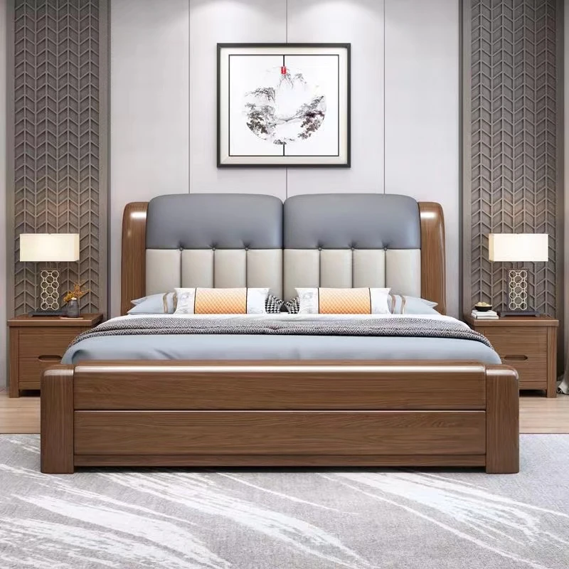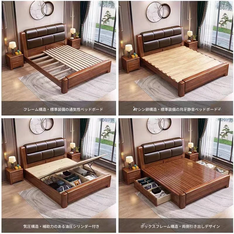 ウォールナット無垢材 1.8m ダブルベッド 中華モダンシンプルデザイン 1.5m ソフトパッキング 主寝室に最適 経済的収納付きベッド