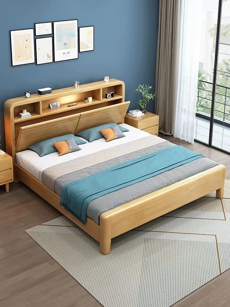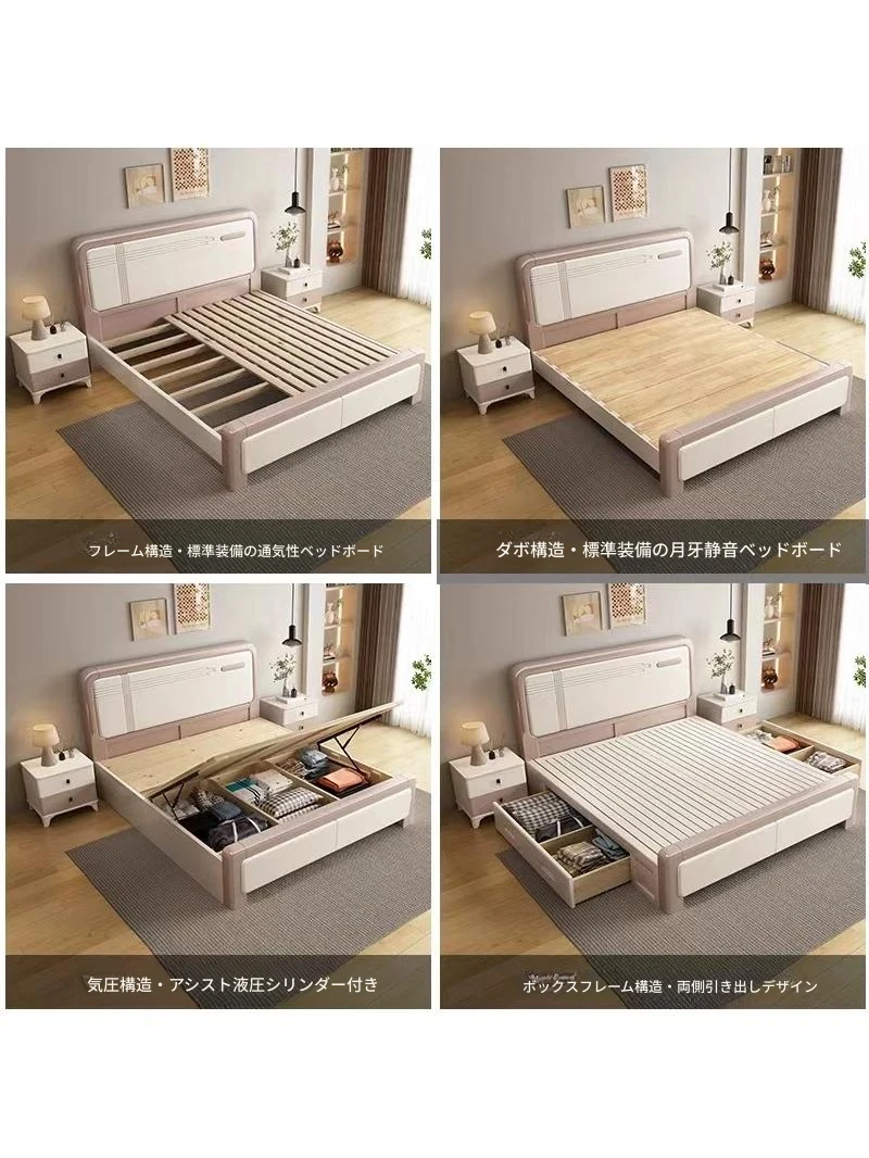 シンプルでモダンなデザインの1.8m実木ダブルベッド - 経済的な1.5mフレーム高収納付き!主寝室に最適な婚礼用大床、快適な睡眠空間を提供します。