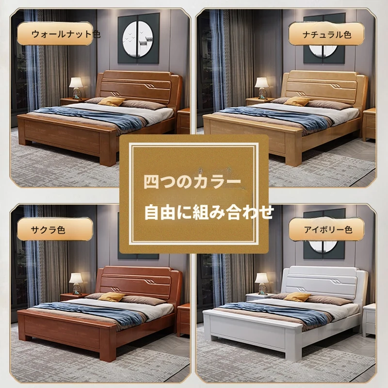 北欧スタイルの無垢材ベッド|モダンでシンプルなデザイン|1.5m・1m・2mサイズ対応|工場直販|シングル・ダブルベッド|主寝室に最適な大容量収納付きベッド