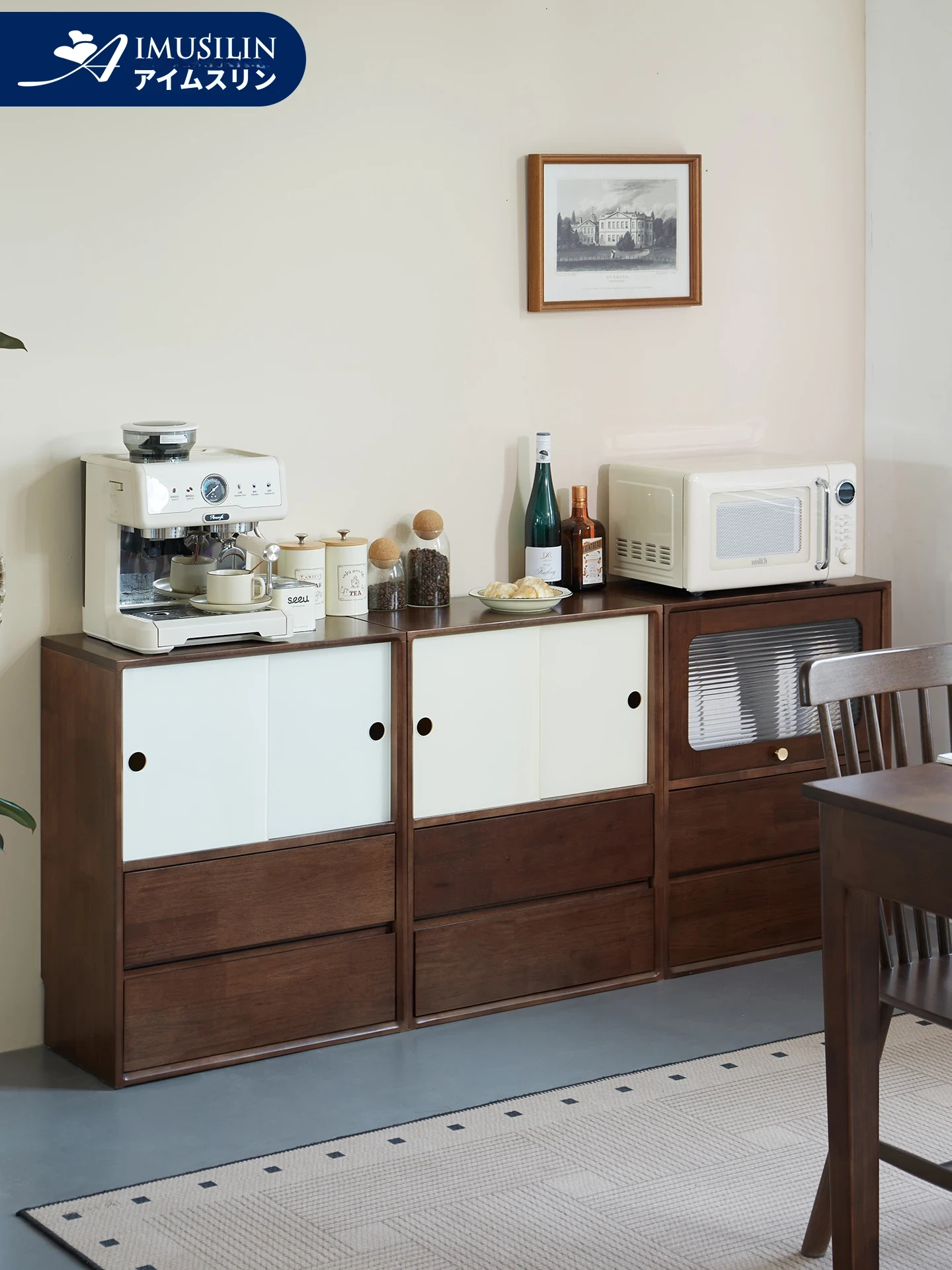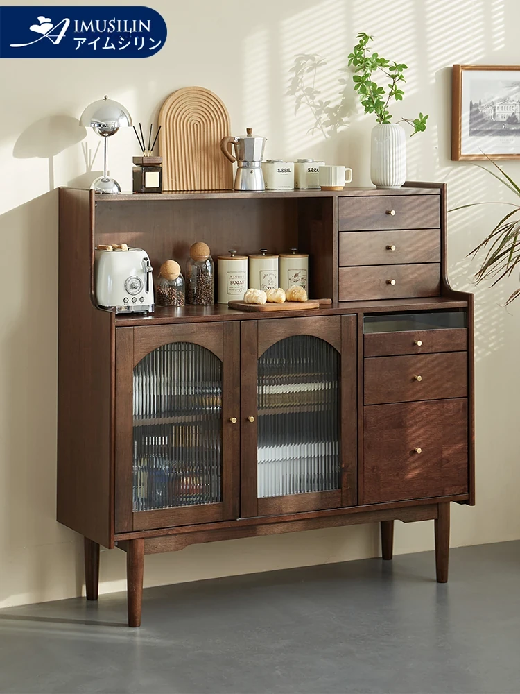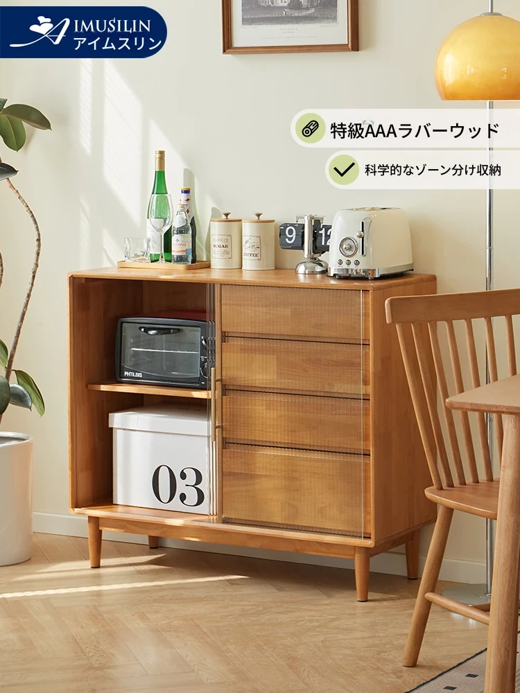 全実木製ダイニングサイドボード - 壁掛け一体型収納キャビネット!小型住宅に最適なワインキャビネット・キッチン収納!シンプルでモダンなティーキャビネットで、あなたの空間をスタイリッシュに演出します!
