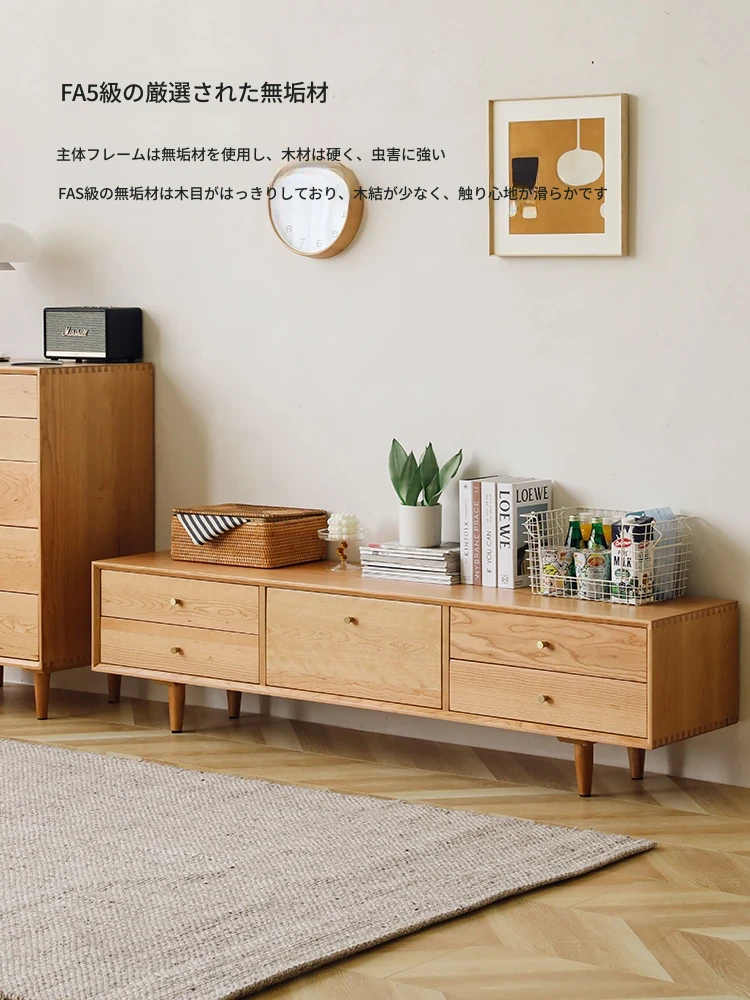 北欧スタイルのナチュラル木目テレビキャビネット - チェリーウッドのモダンでシンプルなデザイン、コンパクトなお部屋にも最適な引き出し付きリビング収納家具!