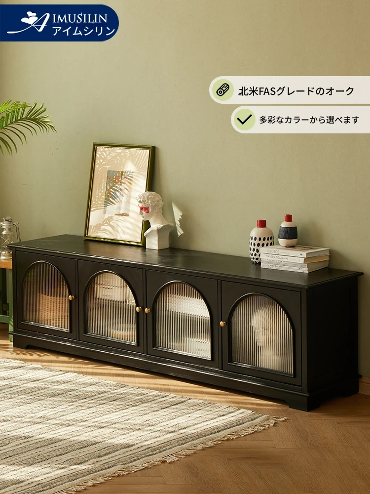 フレンチヴィンテージスタイルの無垢材テレビキャビネット - おしゃれなリビングにぴったり!収納力抜群で小型住宅にも最適なフロア収納キャビネット。魅力的なデザインで、あなたの生活空間を格上げします!