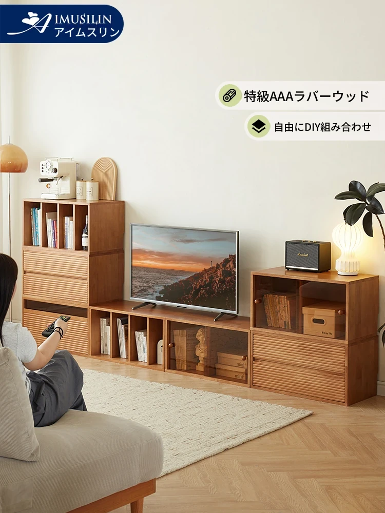 自由に組み合わせ可能な実木製書棚!おしゃれで機能的なリビング・寝室用キャビネット。落ち着いたデザインで、テレビ台やベッドサイドに最適。あなたの空間を華やかに彩ります。
