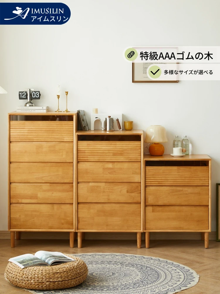 シンプルでスタイリッシュな日本製天然木製収納キャビネット - 寝室にぴったりのスリムなデザイン、引き出し付きで使い勝手抜群!ベッドサイドや狭いスペースにもフィットする、家族のための理想的な収納ソリューションです。