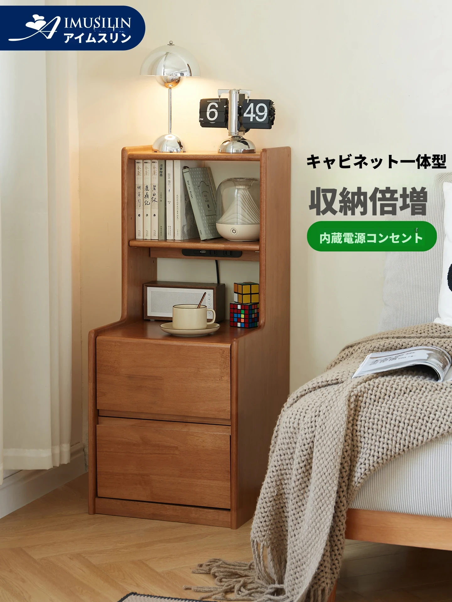 スリムデザインの無垢材ベッドサイドキャビネット - 家庭用寝室に最適な収納力!25cm・30cmの超スリムなサイズで、軽やかな上質感を演出。限られたスペースを有効活用したおしゃれな置物ラックです。