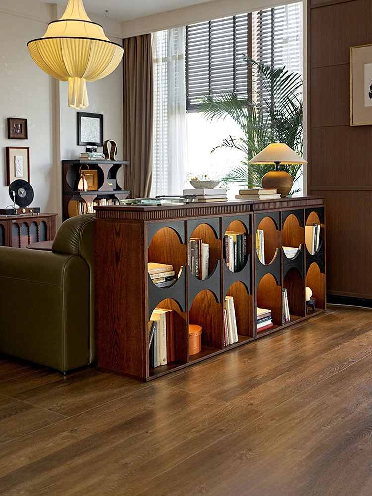 夢のフレンチヴィンテージ無垢材モジュール書棚 - リビングの間仕切りに最適!ソファの背面をおしゃれに演出する収納キャビネット。どんなインテリアにも調和し、心地よい空間を作り出します。