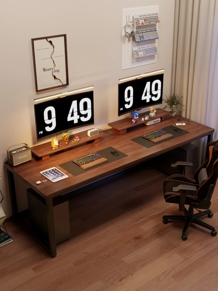 無垢材のコンピューターデスク|家庭用・学習用・ダブルプレイヤー向けゲーミングデスク|広々としたオフィスデスク|快適な作業スペースを実現!