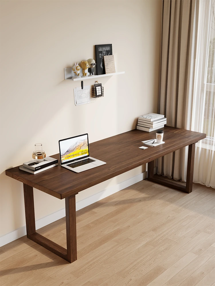 無垢材の大板テーブル|家庭用2人用デスク|レトロスタイルのパソコンデスク|寝室やゲーミングにも最適|ナチュラルなロングテーブル|オフィスにもぴったり!
