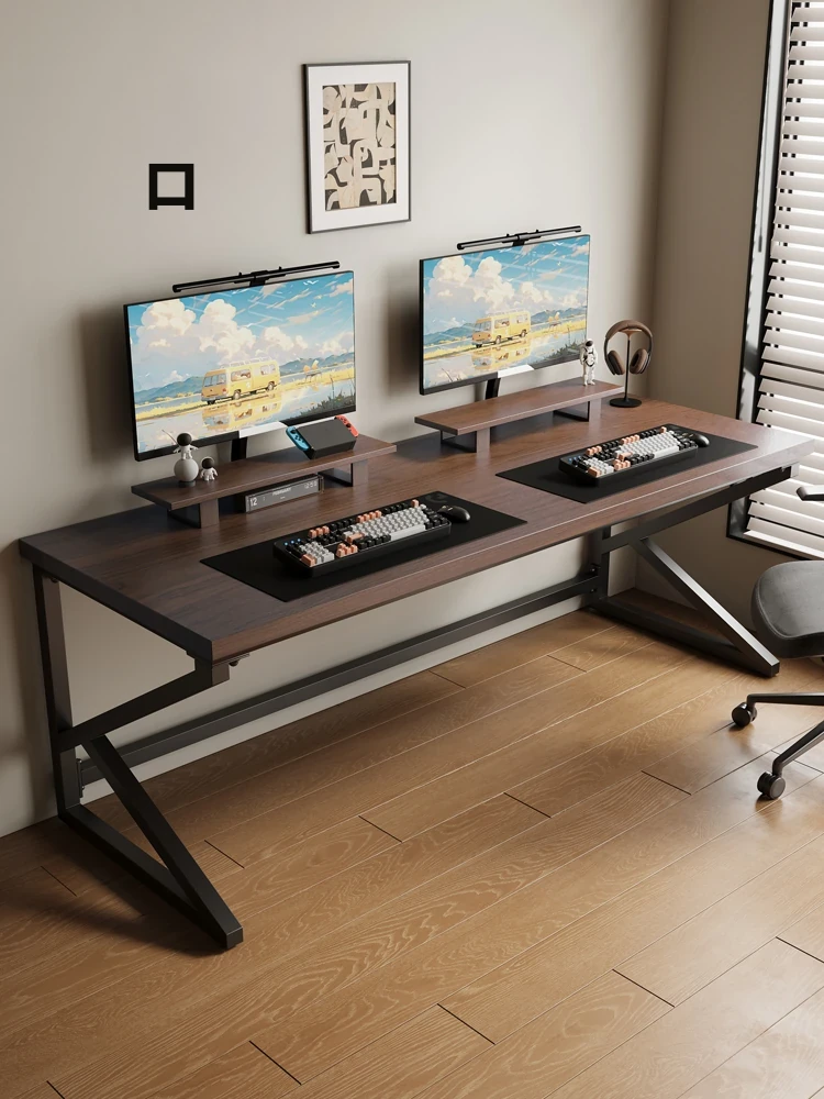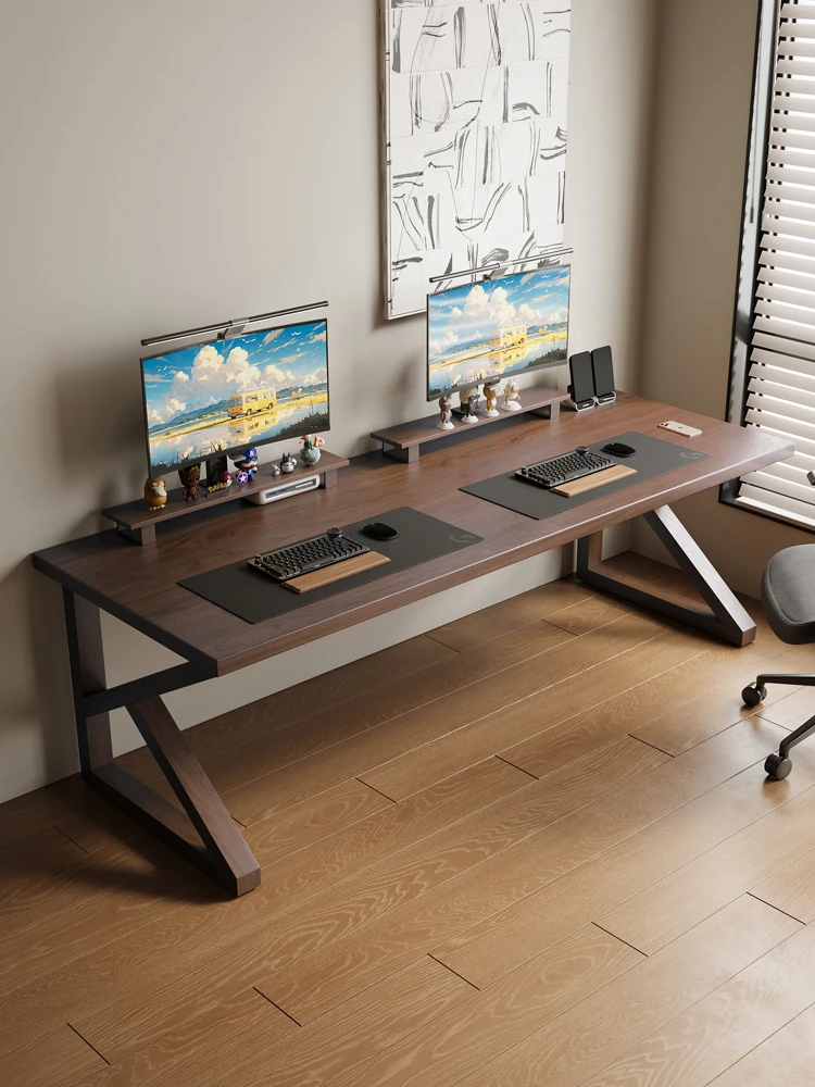 無垢材のK字型コンピューターデスク|家庭用・学習・オフィスに最適|2人用ゲーミングデスク|スタイリッシュなデザインで快適な作業空間を実現!