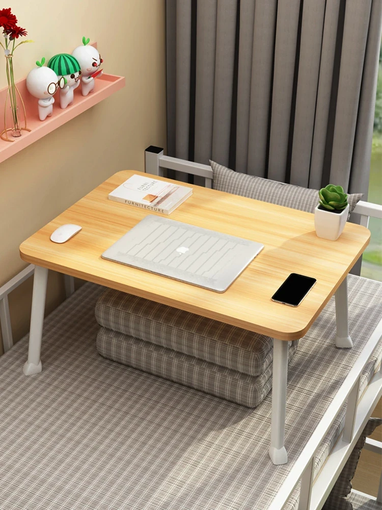 大学生必見!折りたたみ式ベッド上コンピューターテーブル - 寮生活を快適に!シンプルでスタイリッシュなデザイン、勉強やリラックスに最適な小型デスク。省スペースで使いやすい!