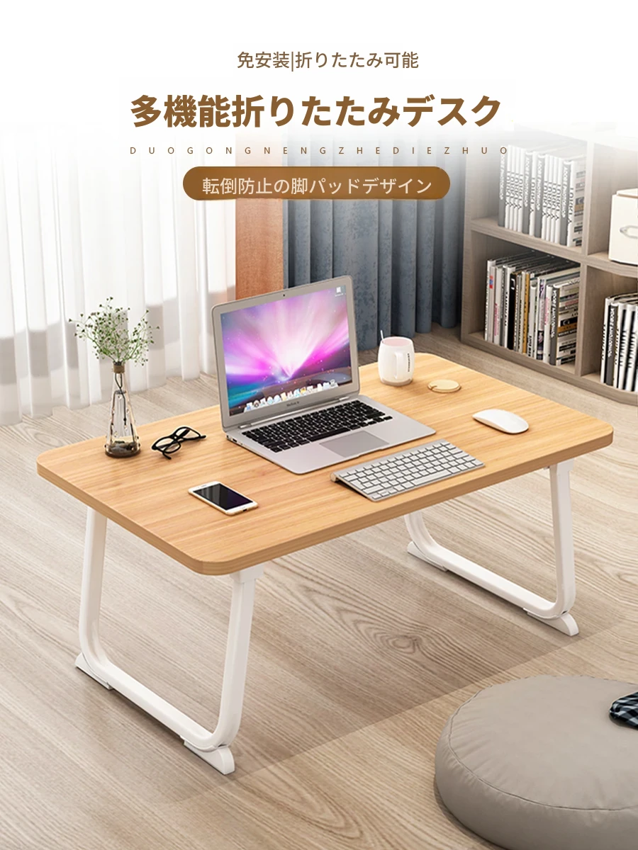 折りたたみ式小型デスク - 宿舎や家庭に最適!地べたに座って快適に書ける学生用学習机。窓際での使用にもぴったりなシンプルデザインのパソコンデスク!スペースを有効活用し、勉強や作業をサポートします。