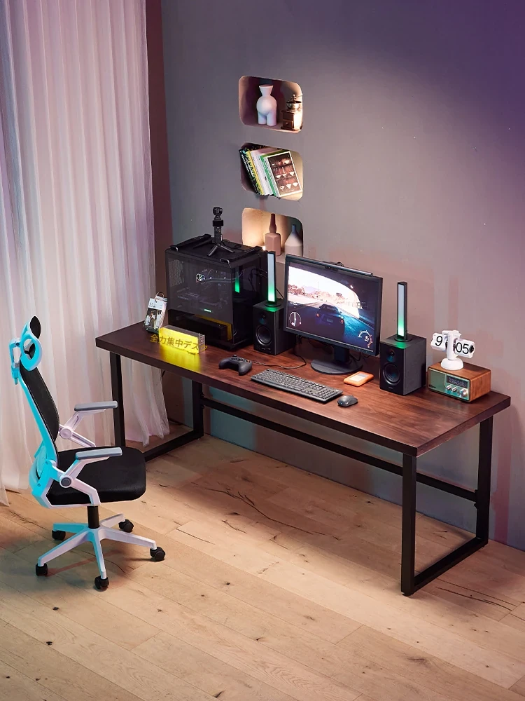 天然木材の大板デスク|家庭用・学習用に最適な長方形デスク|二人用ゲーミングデスク|おしゃれなオフィスワークスペースにぴったり!