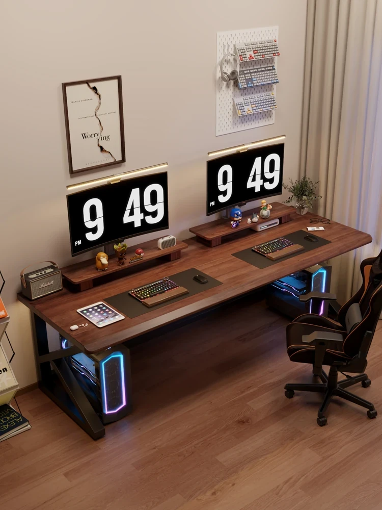 ダブルデザインの無垢材ゲーミングデスク|スタイリッシュなコンピューターデスク|家庭用・学習用・オフィス用|広々とした作業スペースで快適な仕事環境を実現!