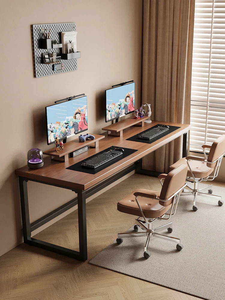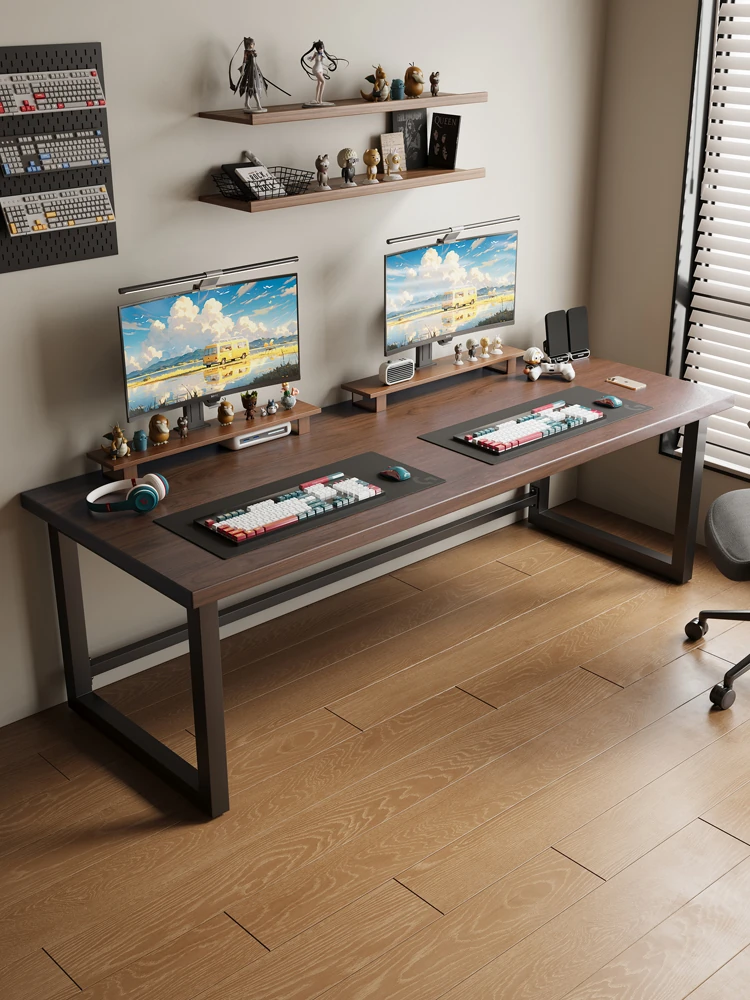 シンプルでスタイリッシュな無垢材デュアルコンピューターデスク - 寝室や家庭用に最適なロングバー書斎テーブル!快適な2人用ゲーミングデスクとしても活躍!オフィスにもぴったりな大きな作業台です。
