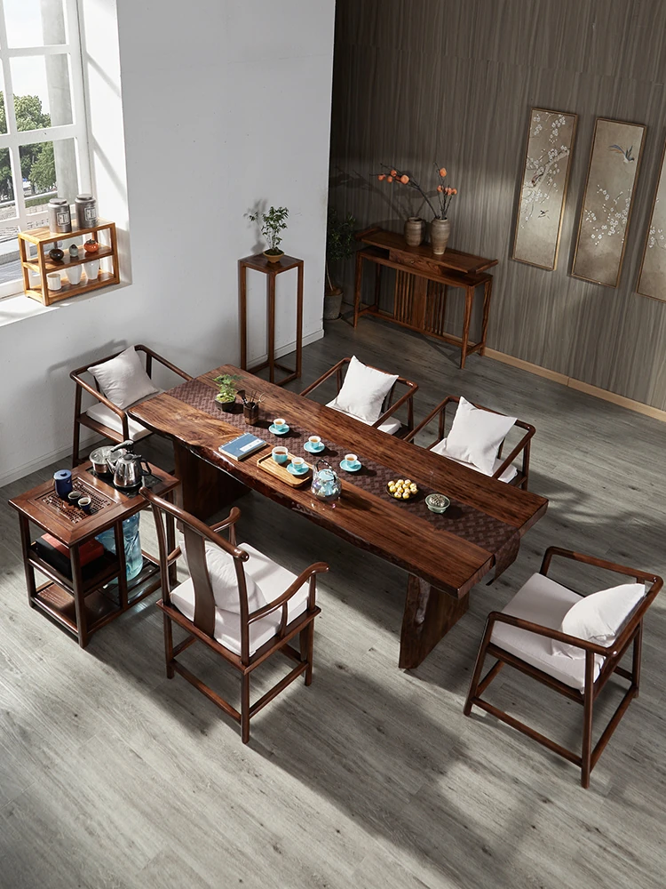 Solid Wood Tea Table Set - Chinese Style Tea Table and Chairs for Office and Home, Perfect for Tea Ceremonies and Gatherings, Natural Oak Finish