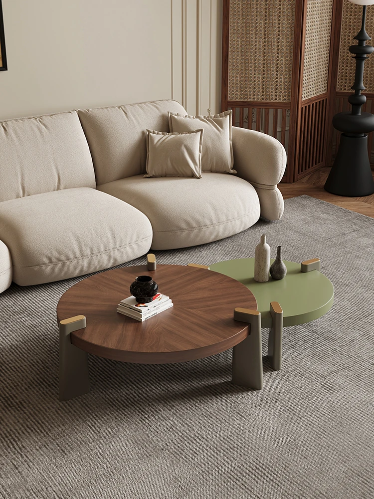 Wabi-Sabi Style Round Coffee Table - Modern Designer Creative Smoked Wood Veneer Living Room Tea Table Set - 2025 New Collection for Home Elegance