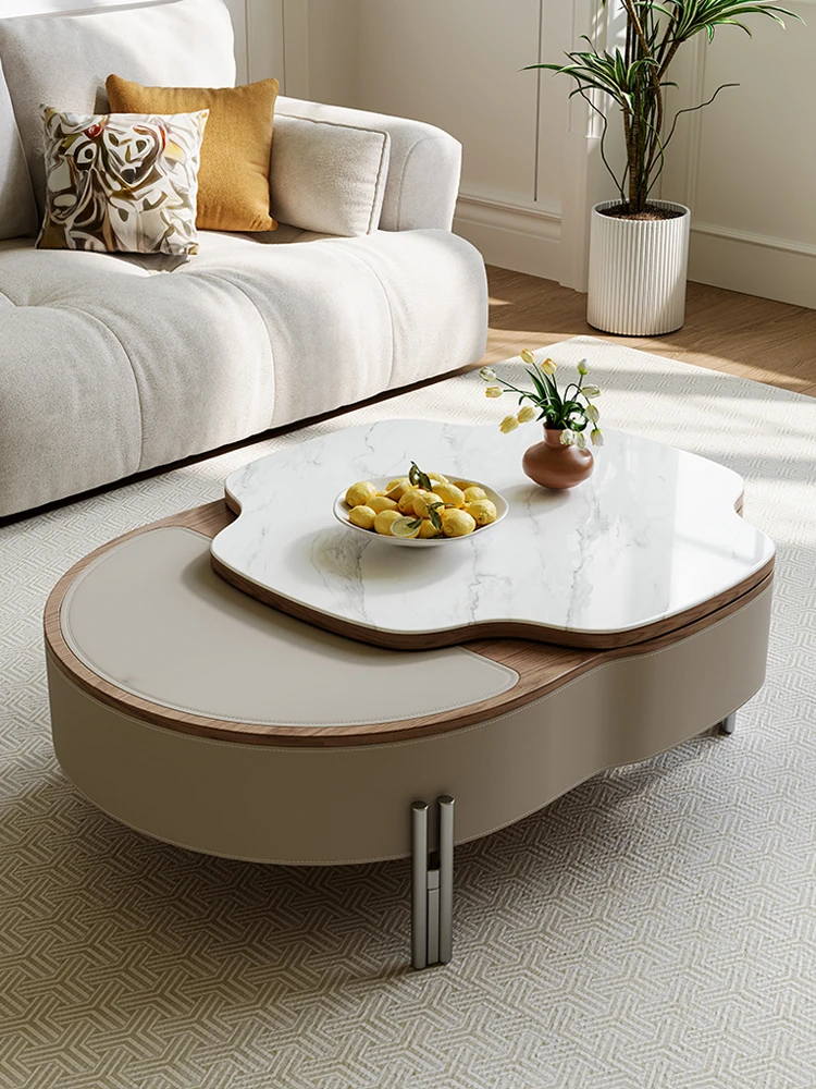 2024 New Cream Style Rotating Coffee Table for Living Room - Adjustable Height Mini Size Premium Microcrystal Stone Table for Small Spaces