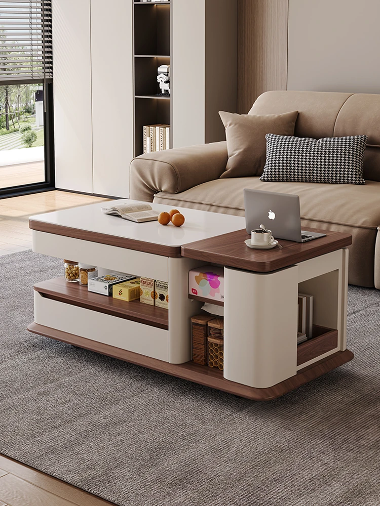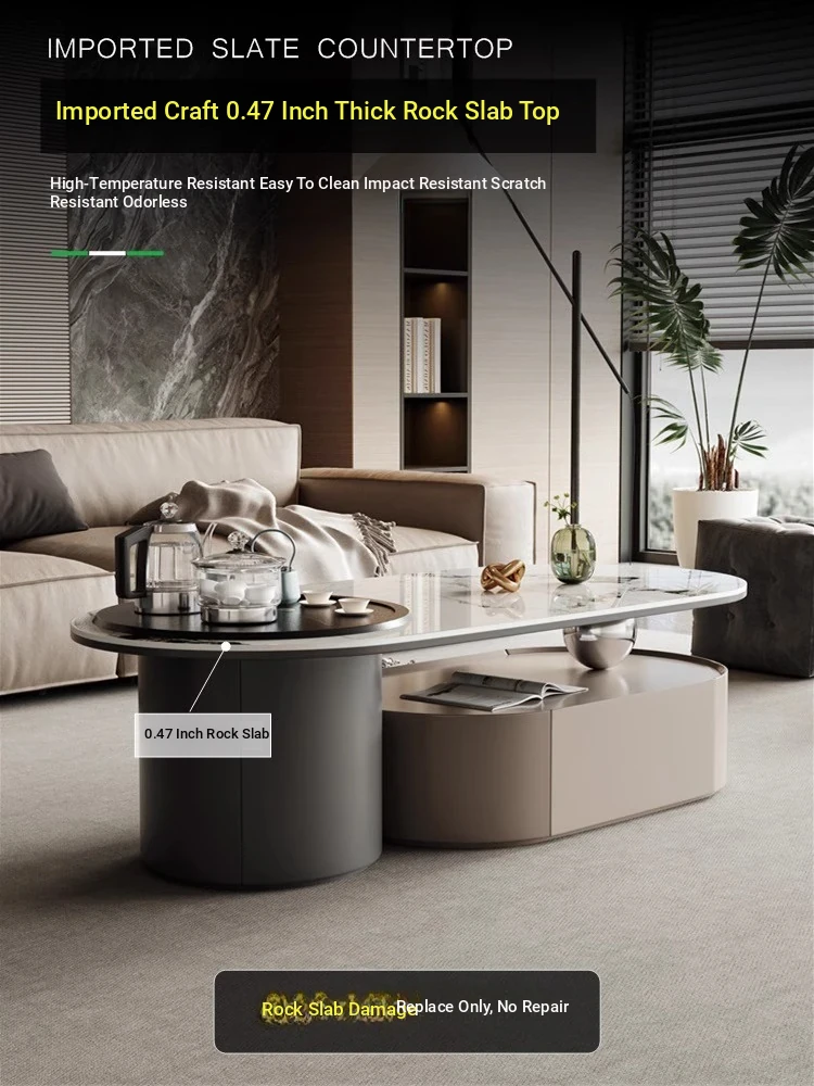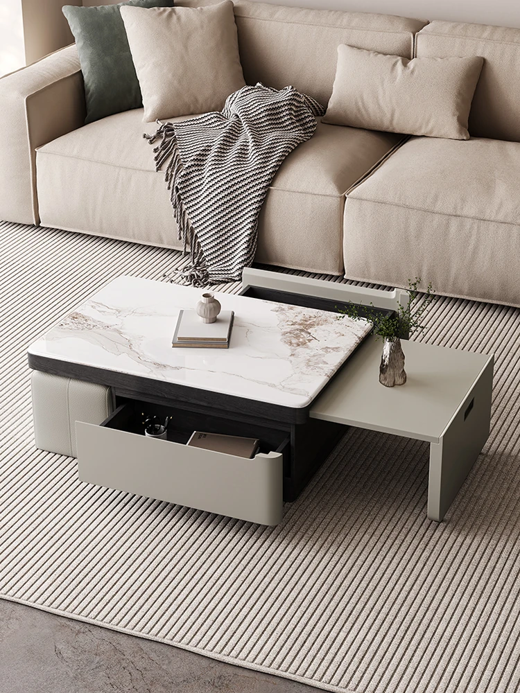 2025 New Modern Expandable Coffee Table with Rock Slab Design - Versatile and Minimalist Living Room TV Stand for Small and Large Spaces