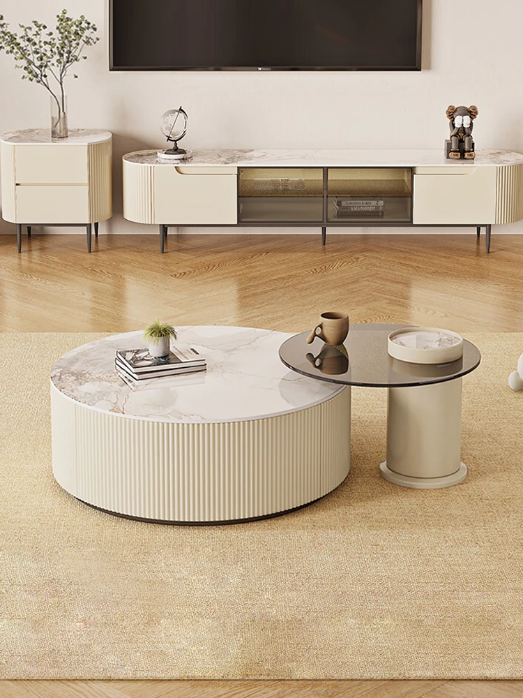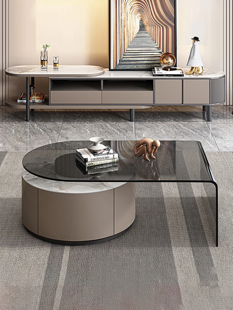 Italian Minimalist Micro-Crystal Coffee Table - Modern Rectangular TV Stand and Round Coffee Table for Small Living Rooms