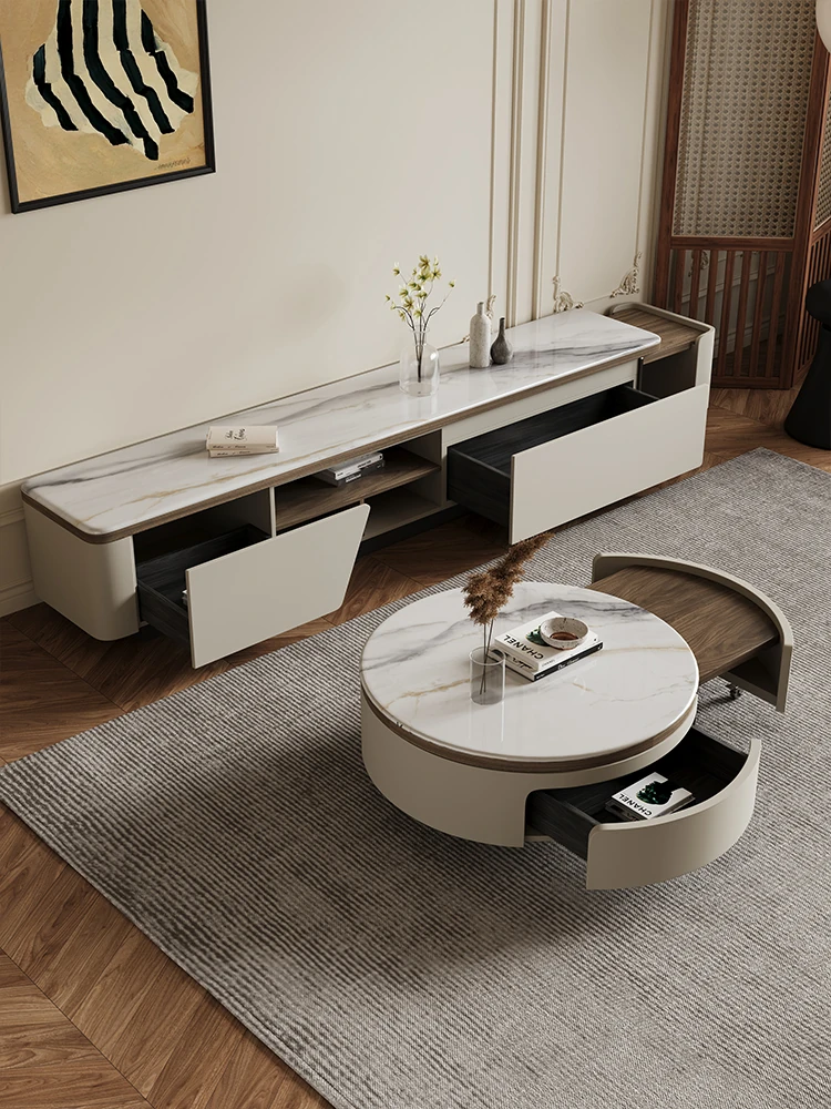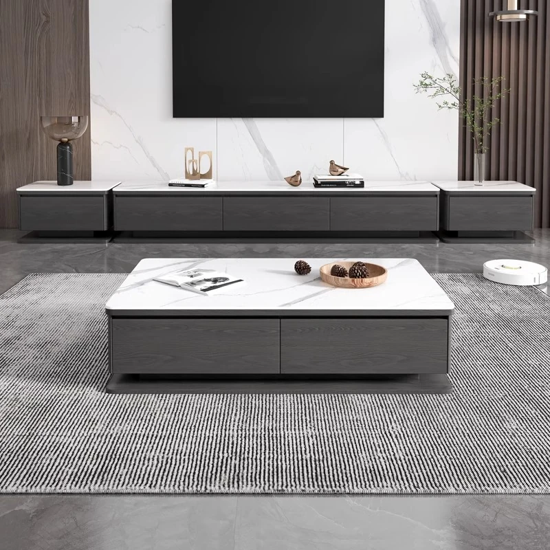 New Minimalist Italian Coffee Table and TV Stand Set - Expandable Nordic Modern Living Room Furniture for Small Spaces with Stylish Rock Slab Design