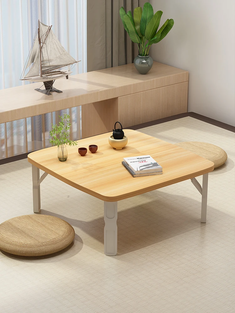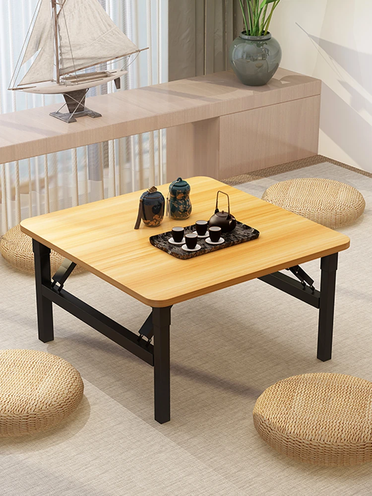 Folding Low Table for Home - Versatile Square Dining Table, Ideal for Tatami and Bay Windows, Perfect for Dorm Rooms and Bedside Use, Compact and Easy to Store