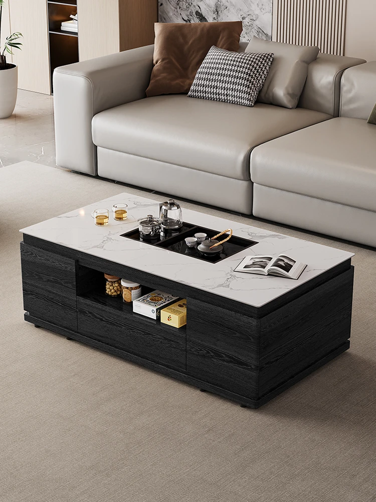 Multipurpose Rock Slab Coffee Table with Integrated Tea Station - Automatic Water Dispensing Kettle for Home Use, Perfect for Kung Fu Tea Brewing in Your Living Room.