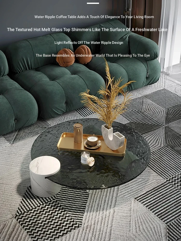 Elegant Baxter Water Ripple Tempered Glass Coffee Table with Marble Top - Modern Minimalist Italian Style Round Design