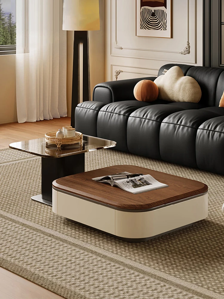 Designer Original Nordic Light Luxury Vintage Solid Wood Chess Coffee Table Set – Modern Minimalist Side Table for Small Living Rooms