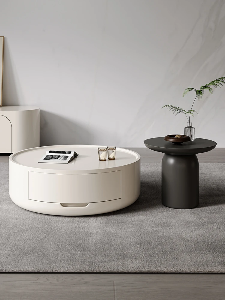 Designer Round Cream Coffee Table Set – Minimalist and Stylish Living Room Furniture for Small Spaces