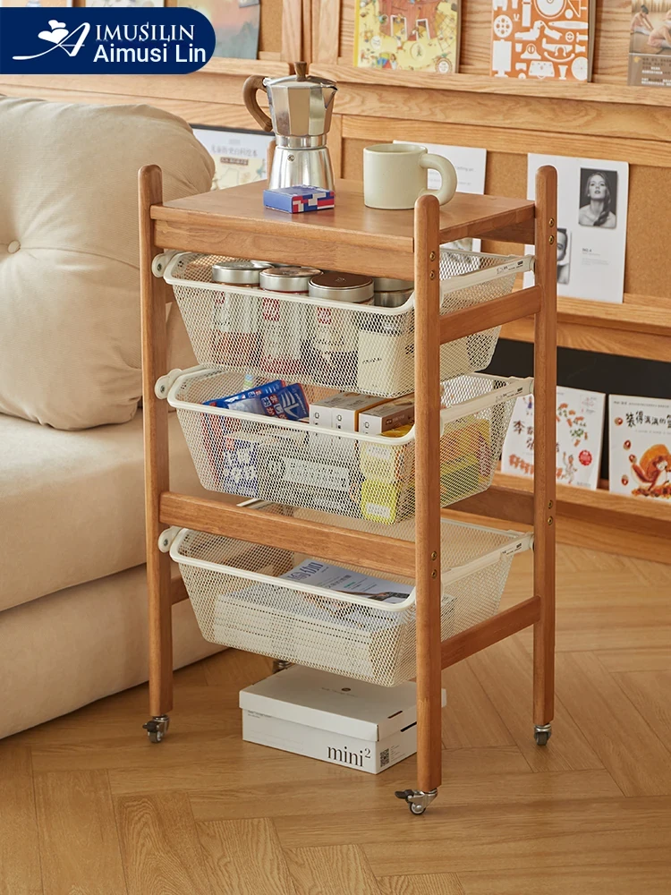 Wooden Rolling Cart Side Table - Versatile Storage Rack with Wheels for Sofa, Living Room, and Bedroom - Ideal Mobile Coffee Table and Organizer