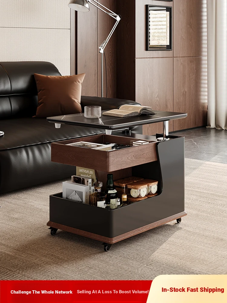 Vintage-Style Adjustable Lift Coffee Table - Portable Multi-Functional Table for Small Spaces, Elegant Design for Modern Homes, Perfect for Chic Living Rooms.