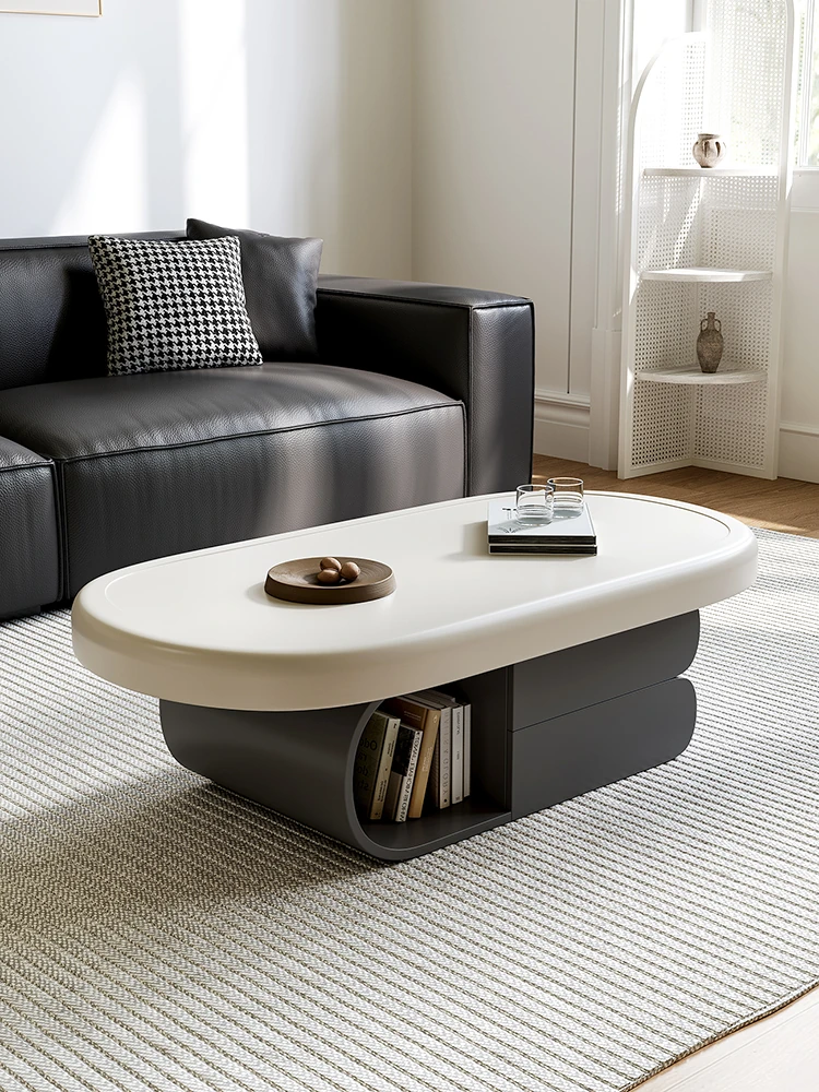 2025 Creamy Wind Oval Coffee Table – Stylish Rock Board Design for Small Living Rooms and Homes, Perfect for Trendy Spaces