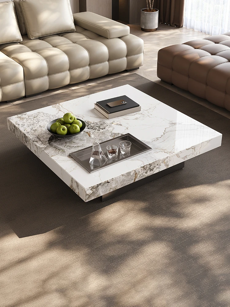Italian Minimalist Luxury Square Coffee Table - Modern White Marble Design for Living Room, Perfect for Elegant and Stylish Spaces