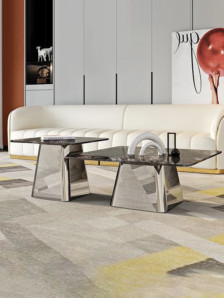 2025 Minimalist Luxury Micro-Crystal Stone Coffee Table Set - Modern Scandinavian Style for Small Living Rooms, Perfect for Chic Interiors