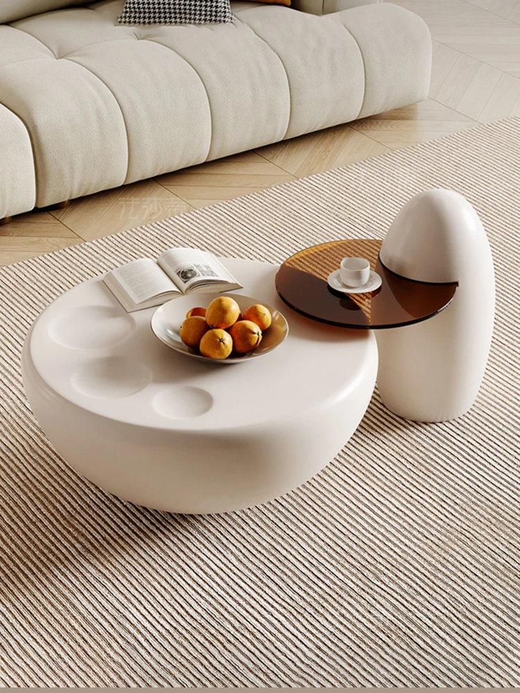 Modern French Cream-Style Creative Cat Paw Coffee Table - Stylish Round Table for Small Living Rooms, Perfect for Home Use, Versatile Size Combinations