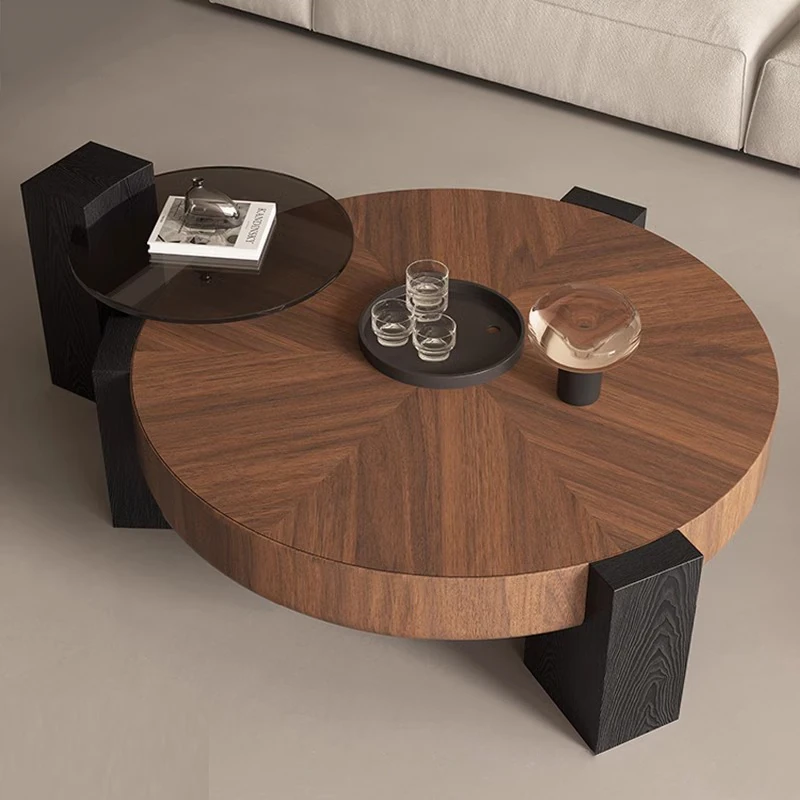 Modern Minimalist Round Black Walnut Coffee Table for Living Room - Perfect for Small and Medium Spaces, Ideal Side Table for Your Home