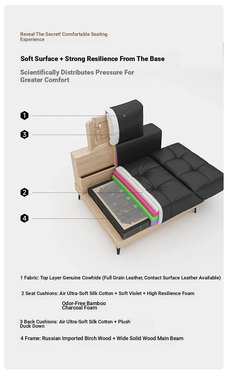 2025 New Multifunctional Genuine Leather Sofa - Rotatable Adjustable Top Grain Cowhide Sofa for Living Room, Perfect for Dynamic Spaces!