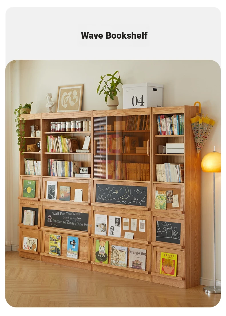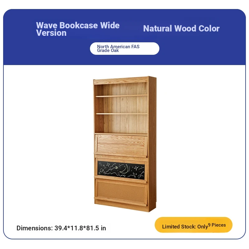 [North American FAS oak] 39.37in wave bookcase log color (39.37in*11.81in*81.50in)