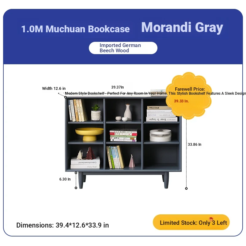 [German Import Beech] 39.37in Muchuan bookcase Morandi Gray (39.37in*12.60in*33.86in)