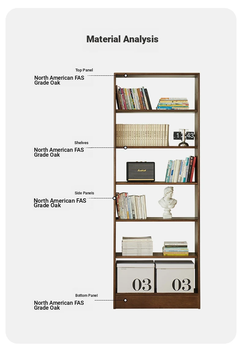 [North American FAS oak] 19.69in wave bookcase log color (19.69in*11.81in*81.50in)