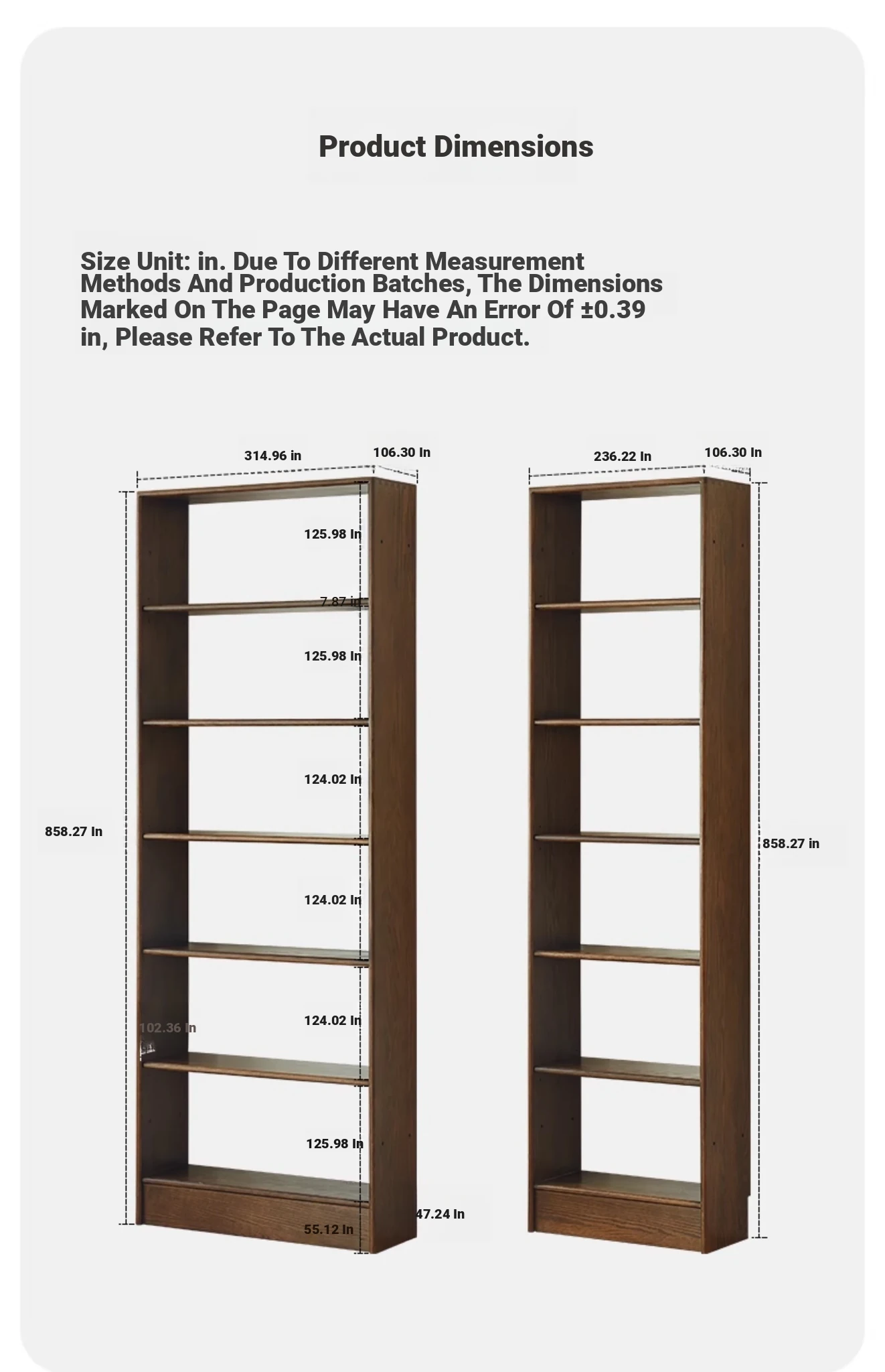[North American FAS oak] 23.62in Prague bookcase walnut color (23.62in*10.63in*85.83in)