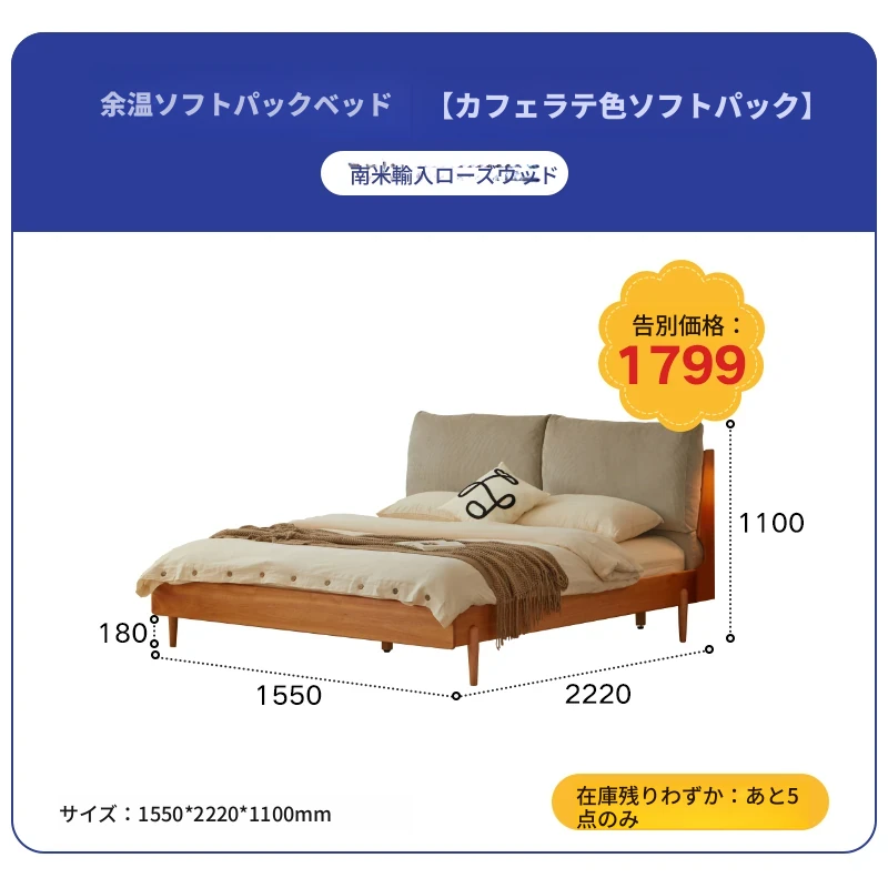 カフェオレ色1.5mソフトパッケージベッド(1550*2220*1100mm)