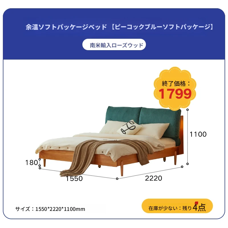 孔雀ブルー1.5mソフトパッケージベッド(1550*2220*1100mm)