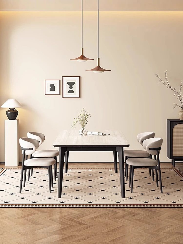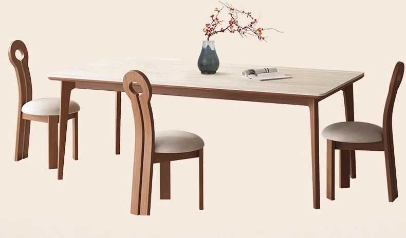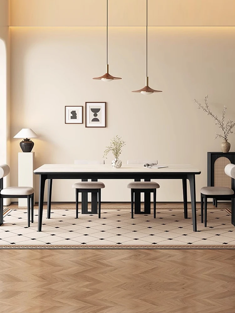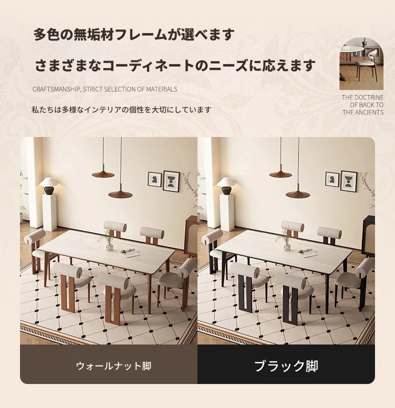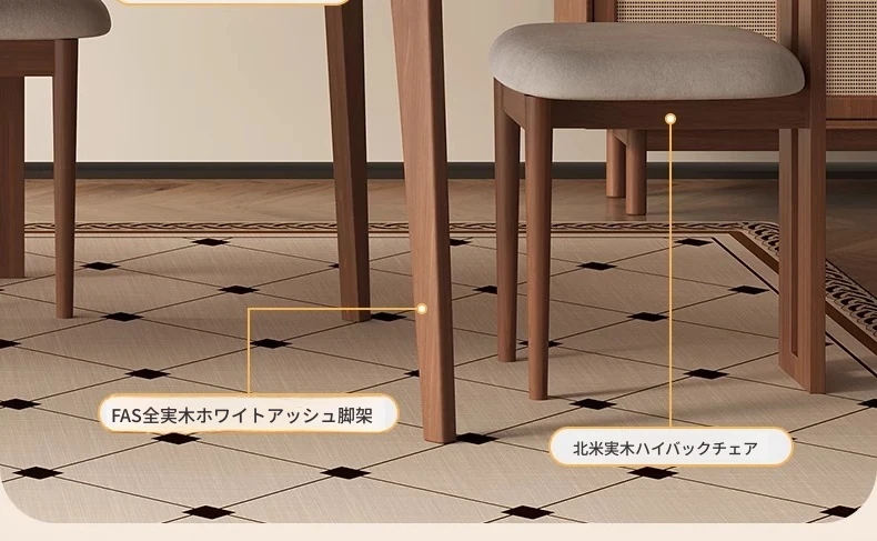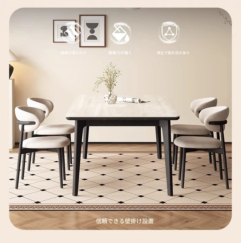 デリフォンの無垢材ロックストーンダイニングテーブル - ブラックウッド&ホワイトアッシュ仕上げ!モダンでシンプルなデザイン、小さな部屋にもぴったりの家族向けテーブルセット。おしゃれなリビングに最適です!