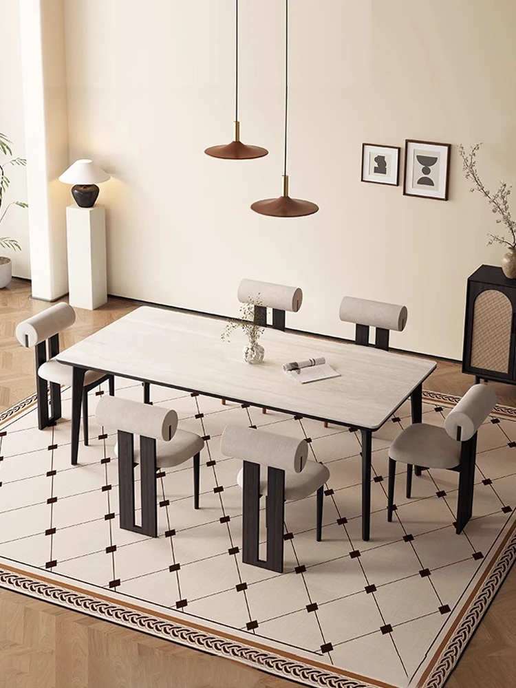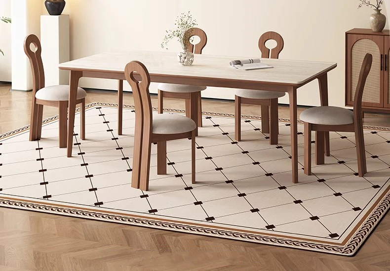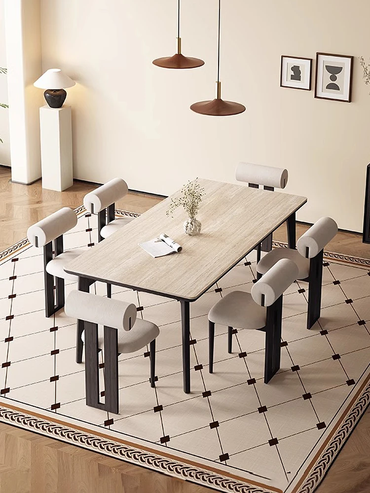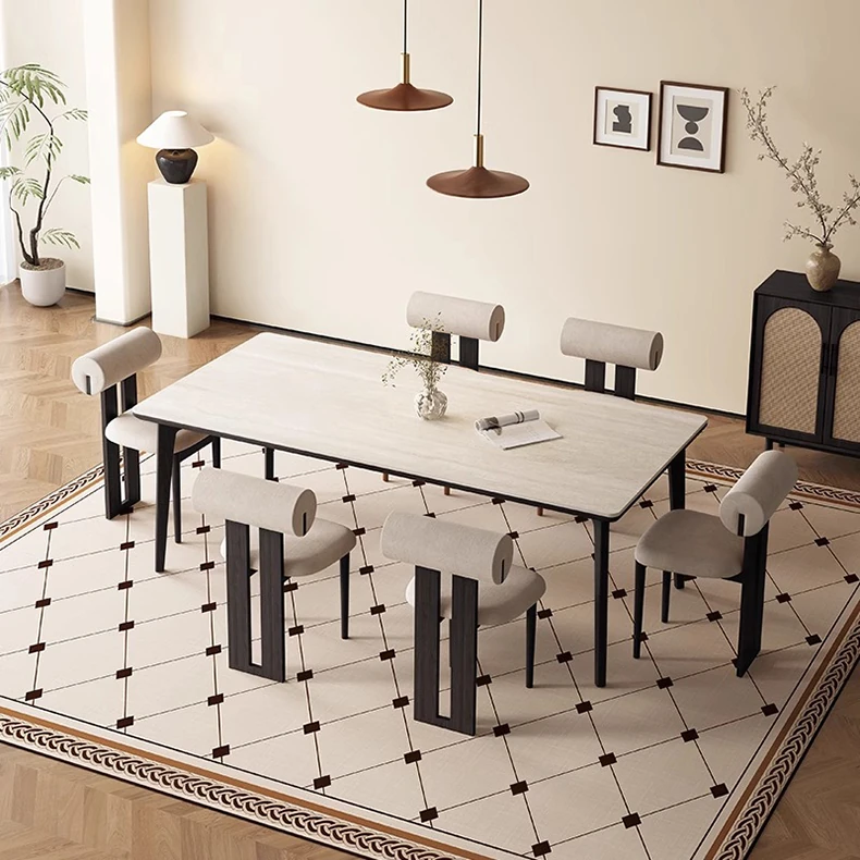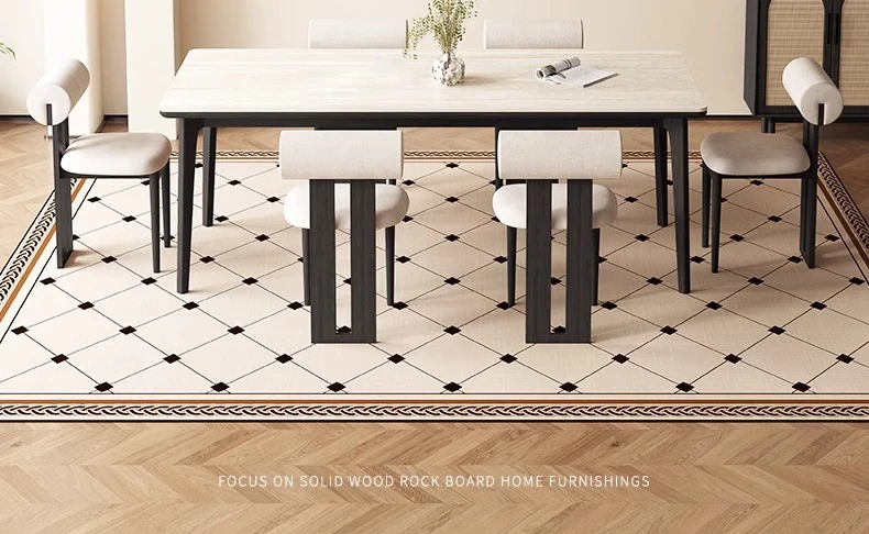 デリフォンの無垢材ロックストーンダイニングテーブル - ブラックウッド&ホワイトアッシュ仕上げ!モダンでシンプルなデザイン、小さな部屋にもぴったりの家族向けテーブルセット。おしゃれなリビングに最適です!
