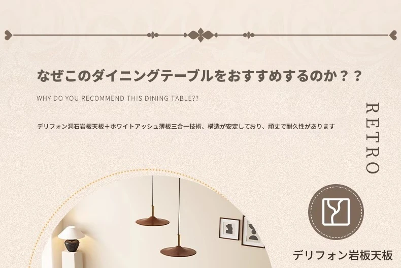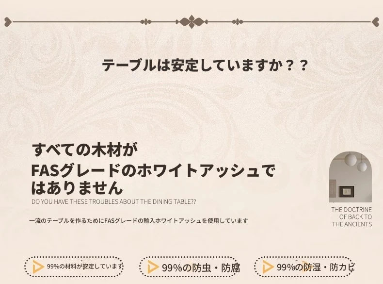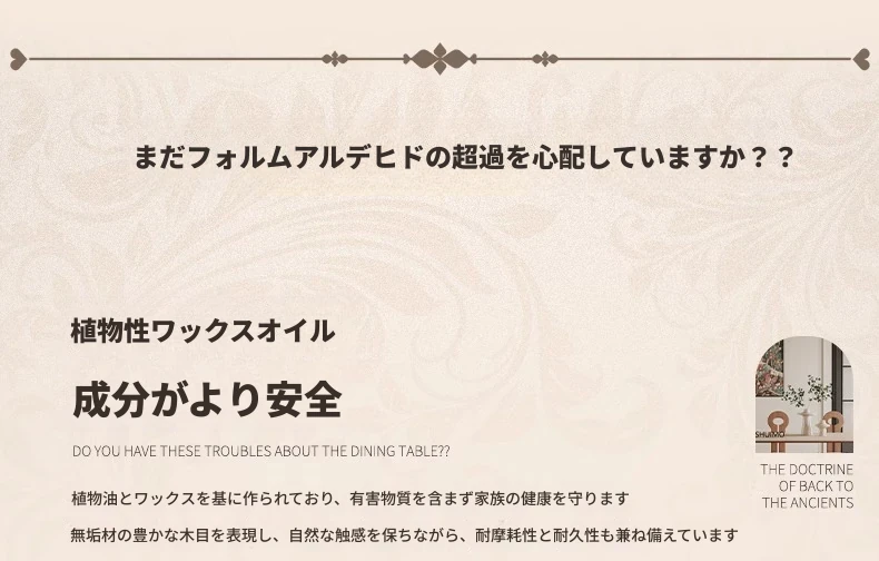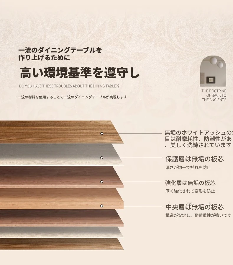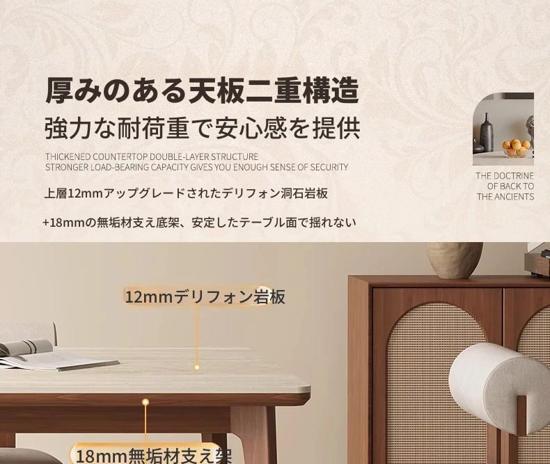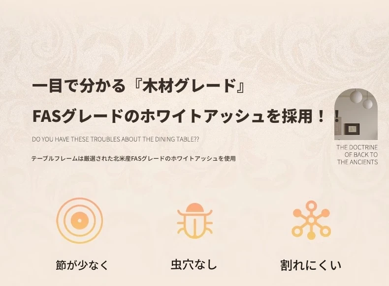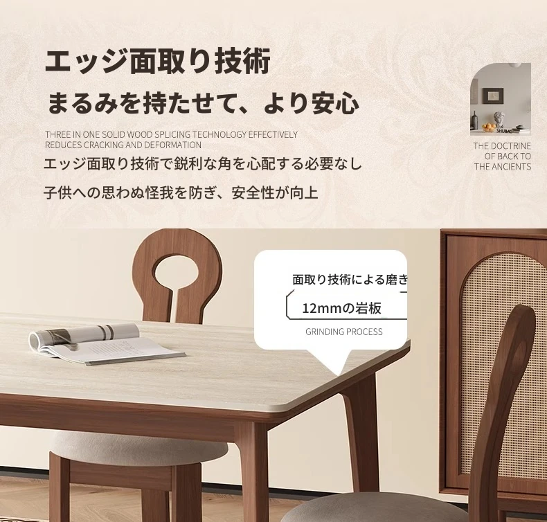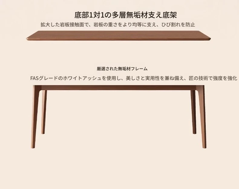 1.8メートル白樺無垢材ダイニングテーブル【高級デリフォン洞石優等板】