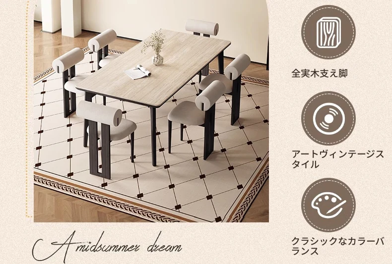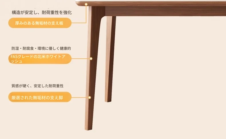 1.3メートル白樺無垢材ダイニングテーブル【高級デリフォン洞石優等板】