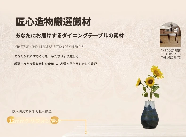 1.2メートル白樺無垢材ダイニングテーブル【高級デリフォン洞石優等板】